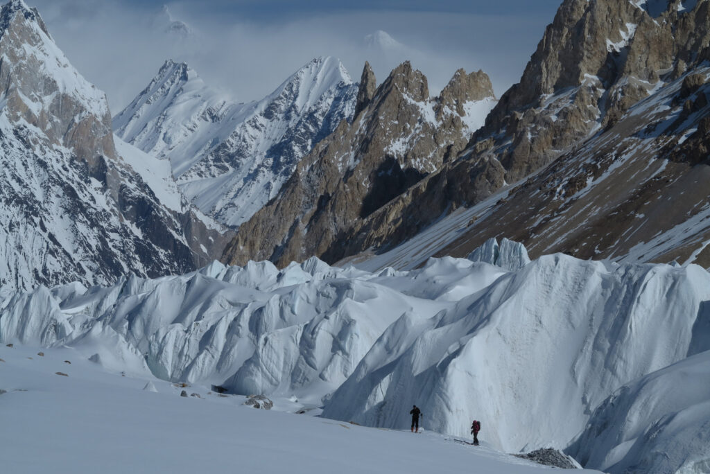 Je continue à visiter les glaciers qui permettent les grands raids à skis, discrètement, sans laisser de traces, et faisant bosser une cinquantaine de montagnards locaux. J’observe et je témoigne de l’incroyable beauté et de l’évolution des plus grands glaciers d’Asie.